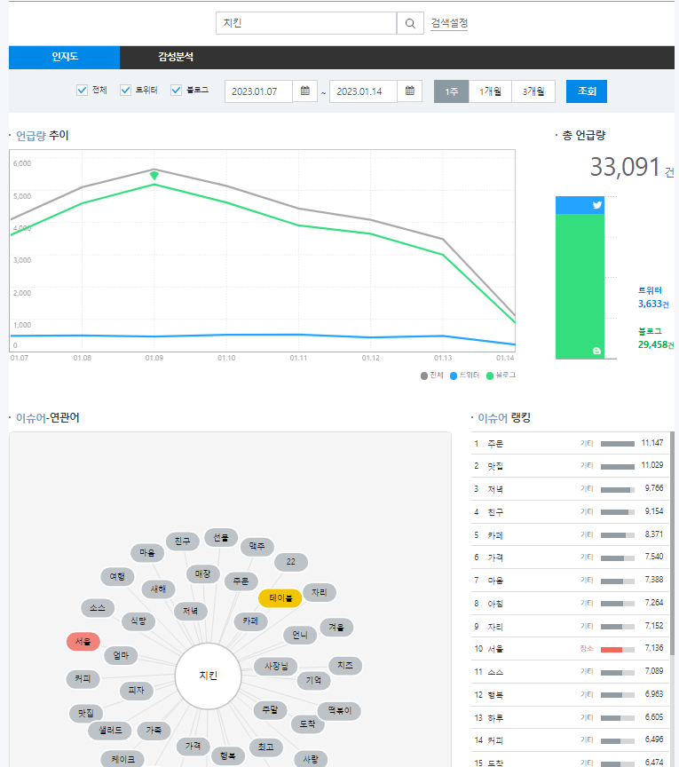 -최근 1주부터 3개월까지의 sns(블로그, 트위터) 언급량 확인