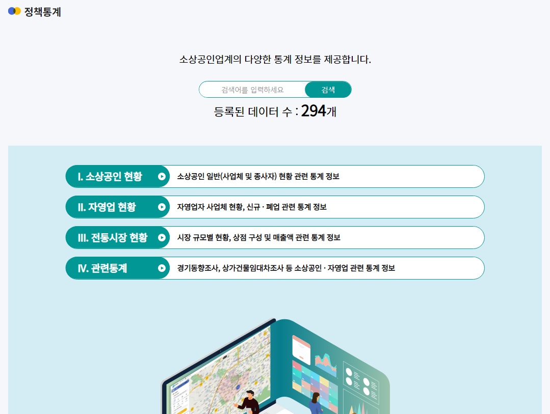 -소상공인시장 공단과 통계청 자료를 다양한 영역별로 아카이빙 하여 통계 확인이 가능함