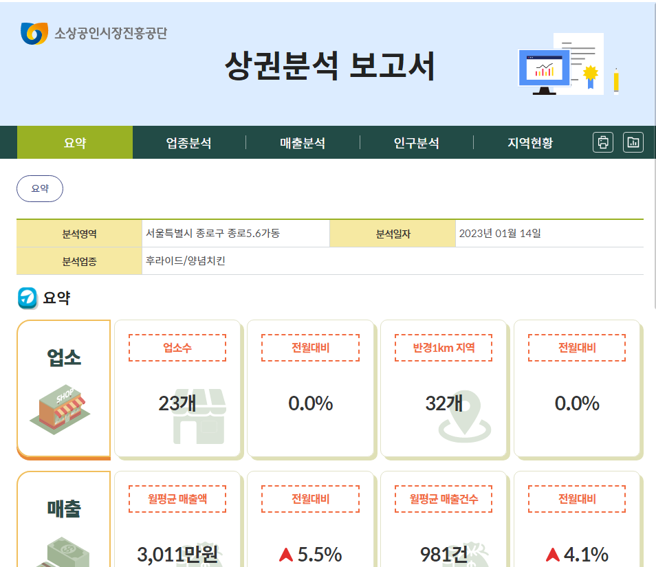 -요약 이외에도 업종, 매출, 인구, 지역 현황에 최근 3년간의 자료를 볼 수 있음